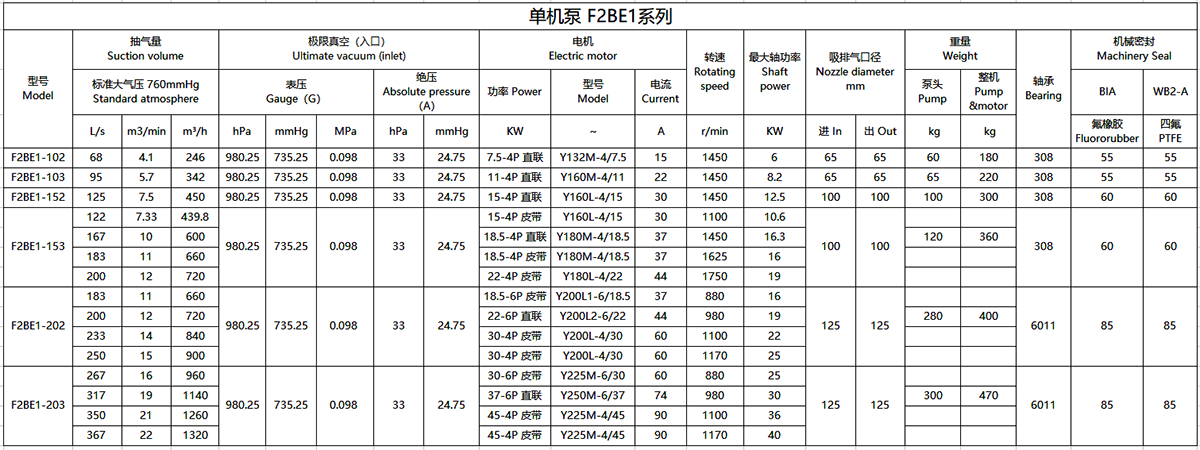 2.上列性能基於進氣溫度20℃,進水溫度15℃,排氣壓力1013hpa的條件,被吸入氣體為飽和空氣。(飽和空氣是指在對應吸入狀態下,其相對濕度為100%的濕空氣。)3.抽氣速率、軸功率性能允差10%。